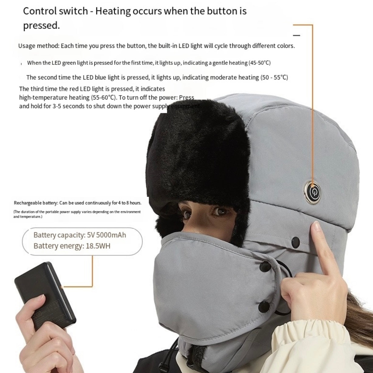 Stay warm and protected even in the coldest conditions with the LITEGUEST Heated Trapper Hat. Designed to provide reliable, long-lasting heat for your ears, face, and neck, this heated winter hat features a built-in USB rechargeable battery heating system that delivers consistent warmth where it matters most. The all-in-one design combines hat, integrated face mask, and neck cover to prevent heat loss and keep you comfortable in freezing temperatures.