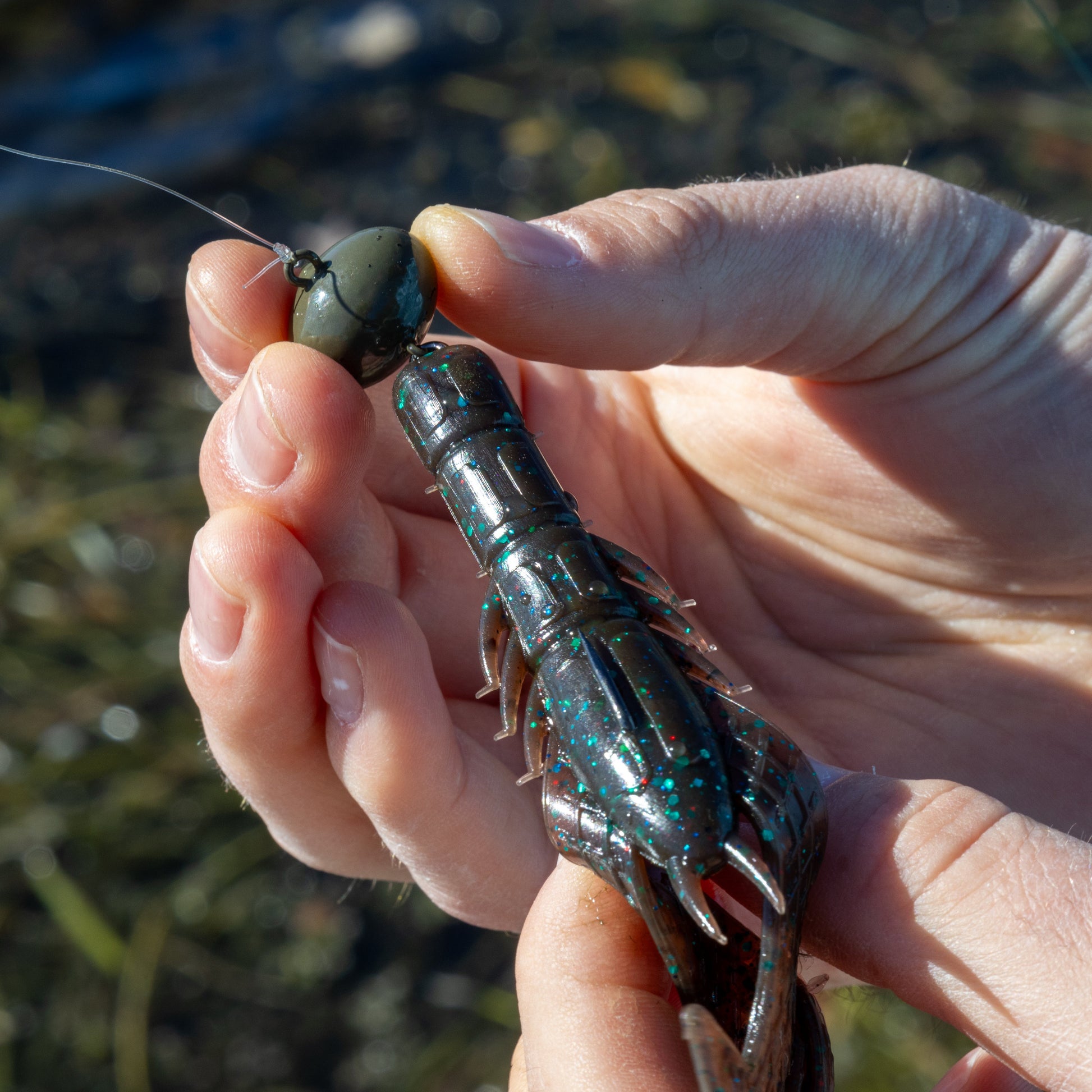 - Football-Style Head: The football-shaped head resists snagging and keeps the jig upright, ideal for fishing rocky bottoms and deep structures.